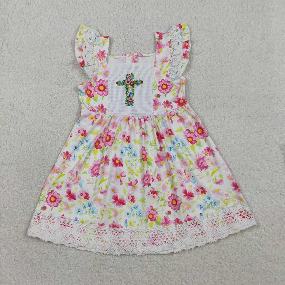 RTS ชุดเดรสอีสเตอร์กระต่ายเขาคือชุดเดรสแบบหลวมทรงเอไลน์น่ารักลายดอกไม้ฤดูร้อนชุดเดรสลำลองระบายอากาศได้ดีสำหรับเด็กผู้หญิง