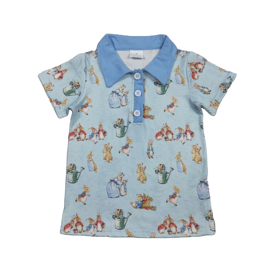 เสื้อโปโลเด็กชายแขนยาวคอกลมพิมพ์ลายกระต่ายดีไซน์ใหม่ RTS สำหรับเทศกาลอีสเตอร์ ระบายอากาศได้ดี ไซส์ใหญ่ ขายส่ง