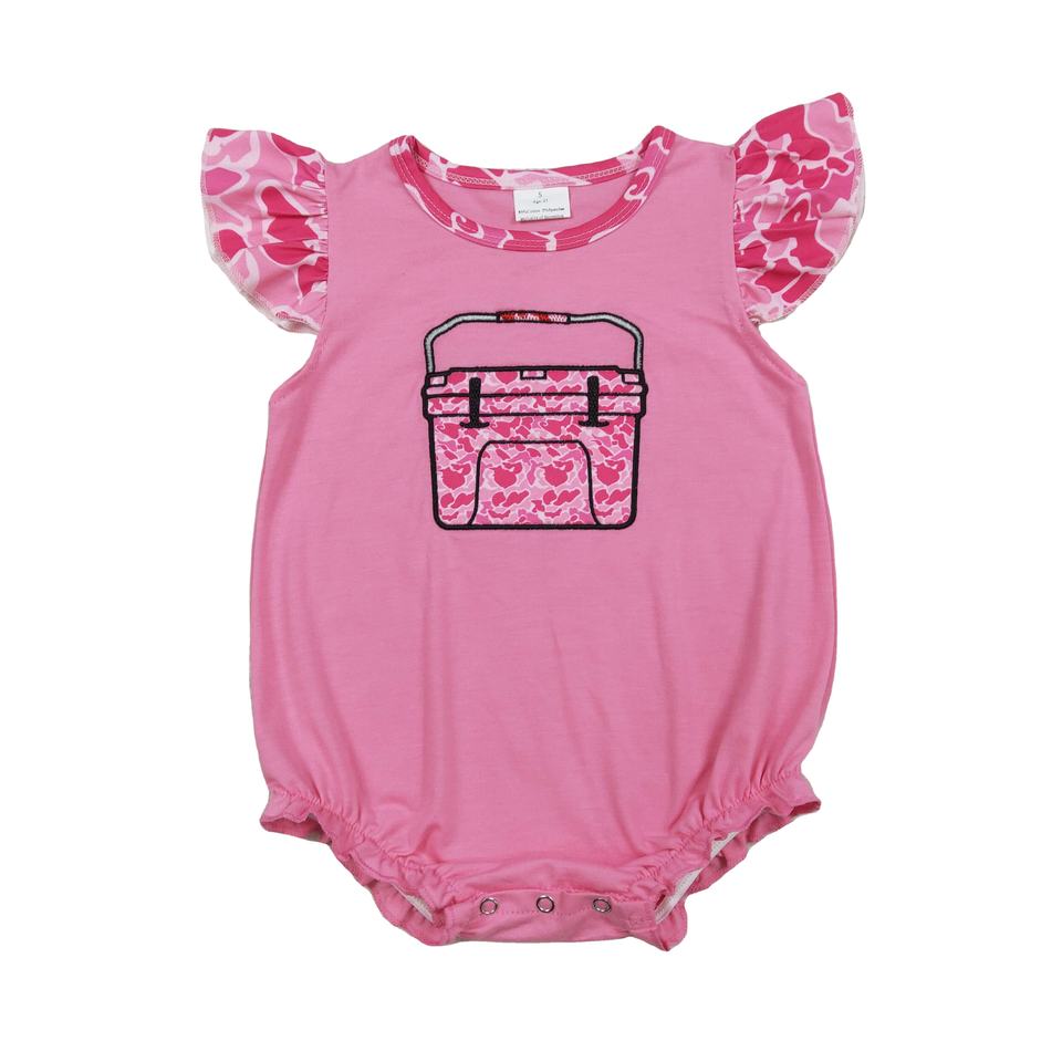 ชุดรอมเปอร์เด็กผู้หญิง ลายปัก RTS กล่องอุปกรณ์ตกปลา ผ้าคอตตอน 95% สแปนเด็กซ์ 5% ผ้า Worsted ซิปซ่อน สไตล์ลำลอง สำหรับเด็กแรกเกิด