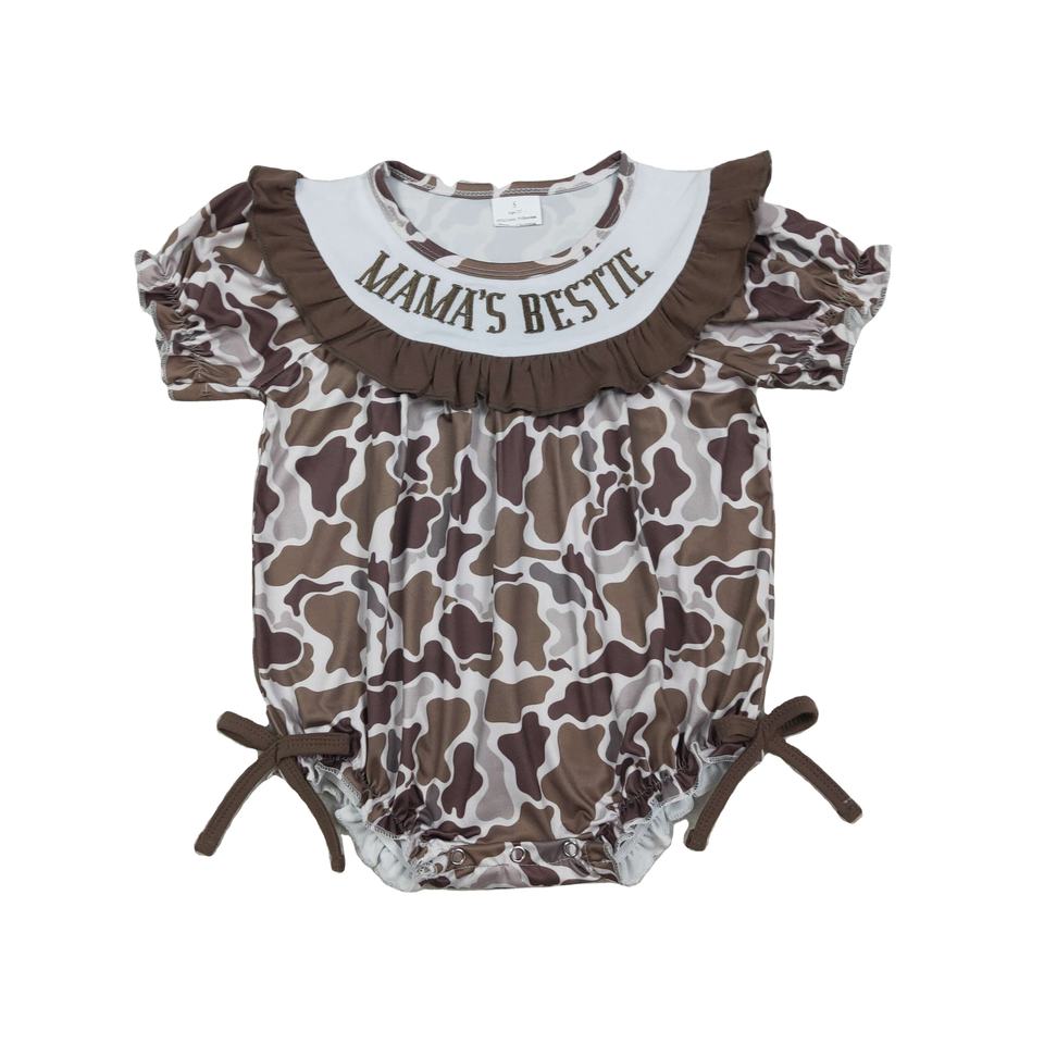 ชุดรอมเปอร์เด็กผู้หญิง RTS Embroidery MAMA'S BESTIE ผ้าฝ้าย 95% ผสมสแปนเด็กซ์ 5% ลายพรางล่าสัตว์ สไตล์ลำลอง สำหรับเด็กแรกเกิด