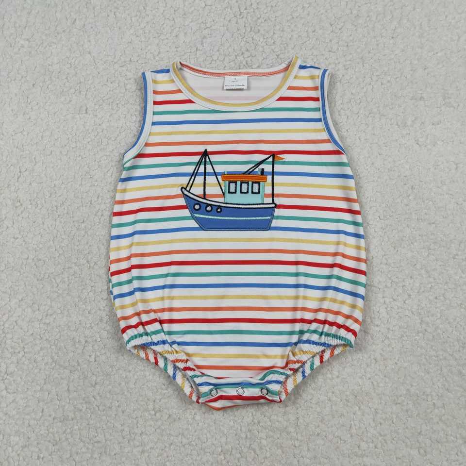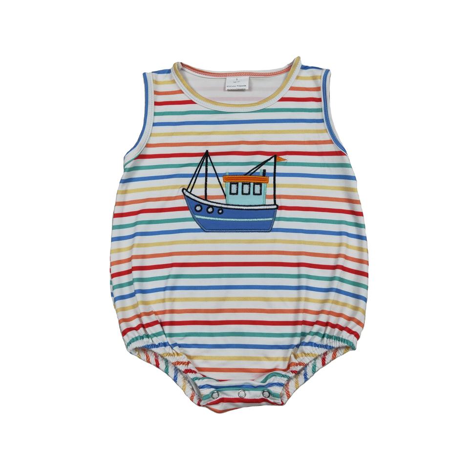 ชุดรอมเปอร์เด็กผู้หญิงลายเรือใบปักลาย RTS ผ้าฝ้าย 95% สแปนเด็กซ์ 5% ลายทางหลากสี ชุดรอมเปอร์เด็กแรกเกิดผ้า Worsted ซ่อนตะเข็บ