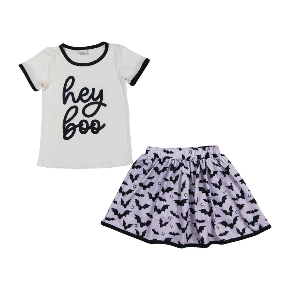 RTS ชุดเสื้อผ้า2ชิ้นเสื้อฮาโลวีนสำหรับเด็กผู้หญิง Hey Boo