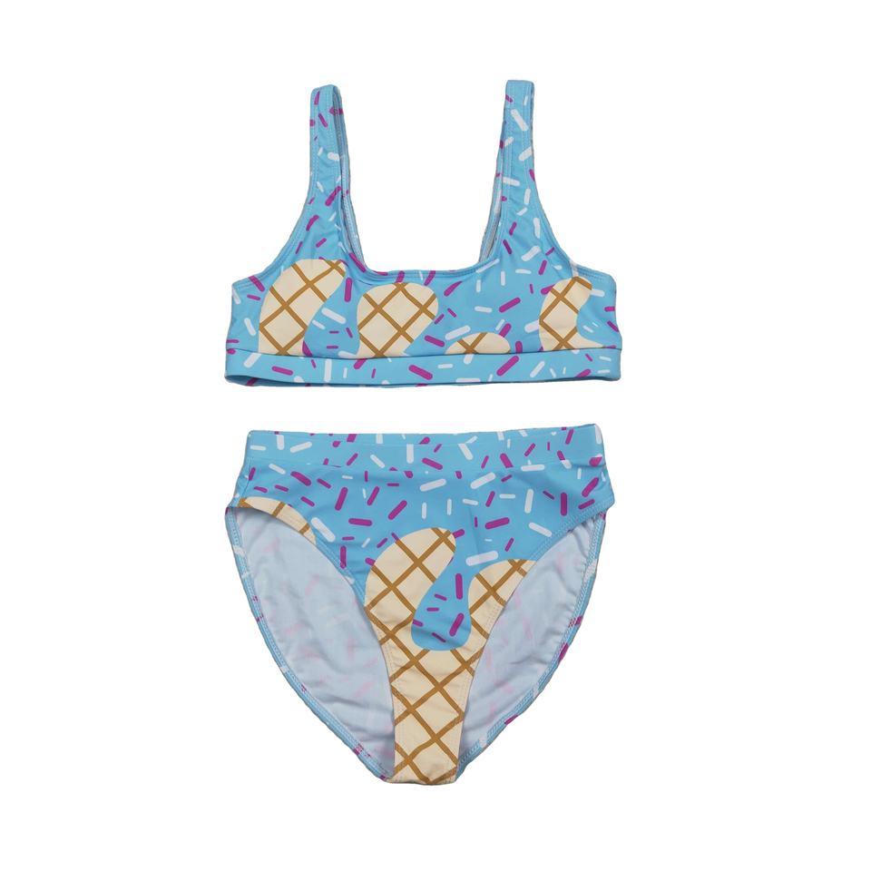 ชุดบิกินี่ผู้หญิงลายไอศกรีมพิมพ์ลายแฟชั่นสุดฮิต RTS แบบ 2 ชิ้น กางเกงว่ายน้ำขาสั้น แห้งเร็ว ผลิตจากผ้าสแปนเด็กซ์/โพลีเอสเตอร์
