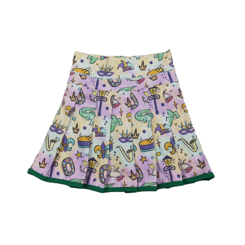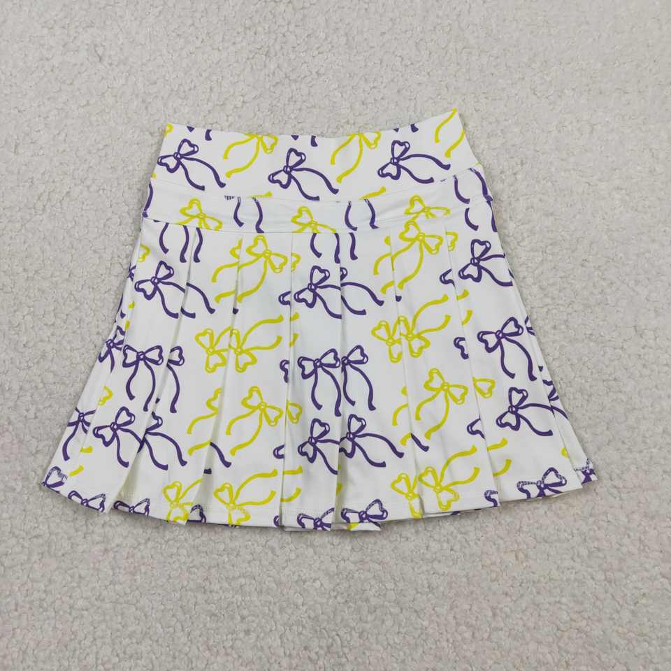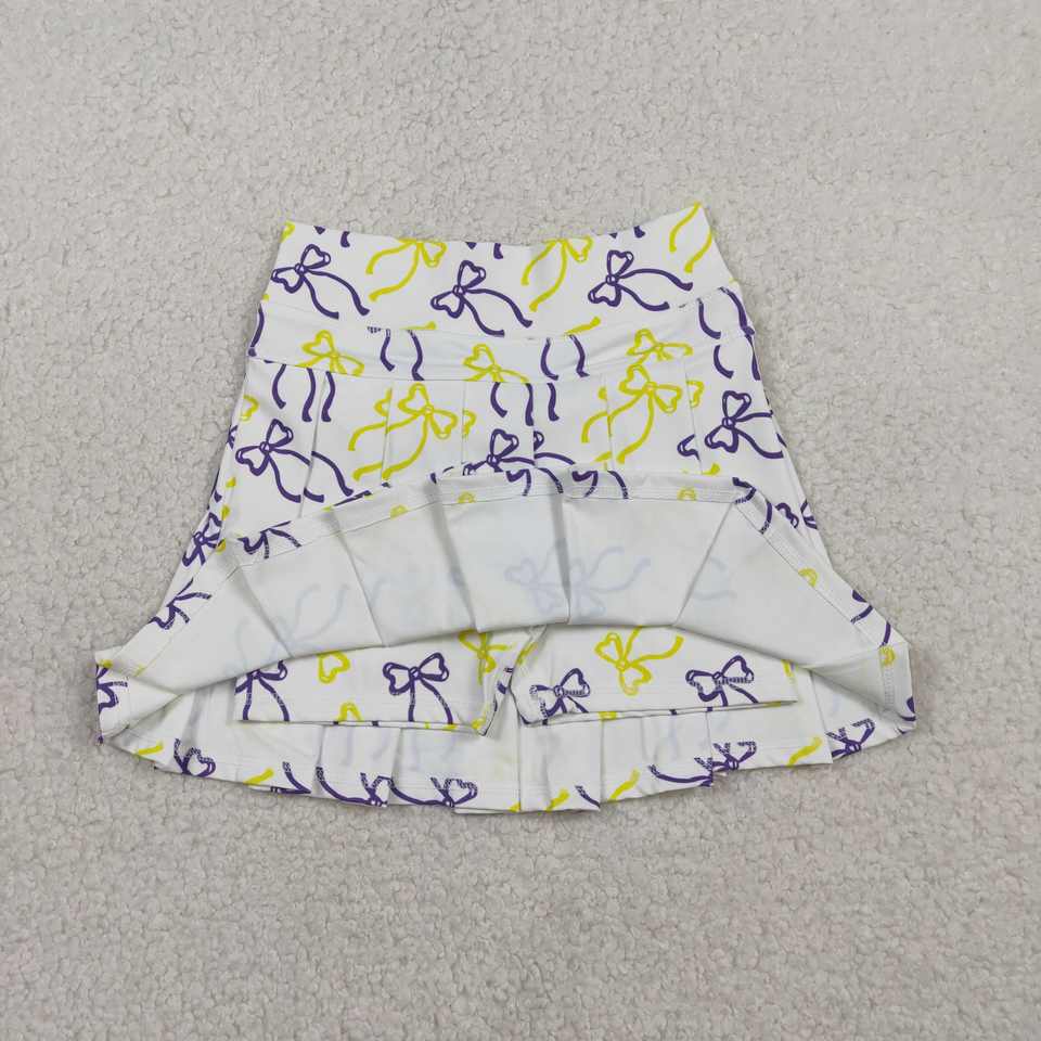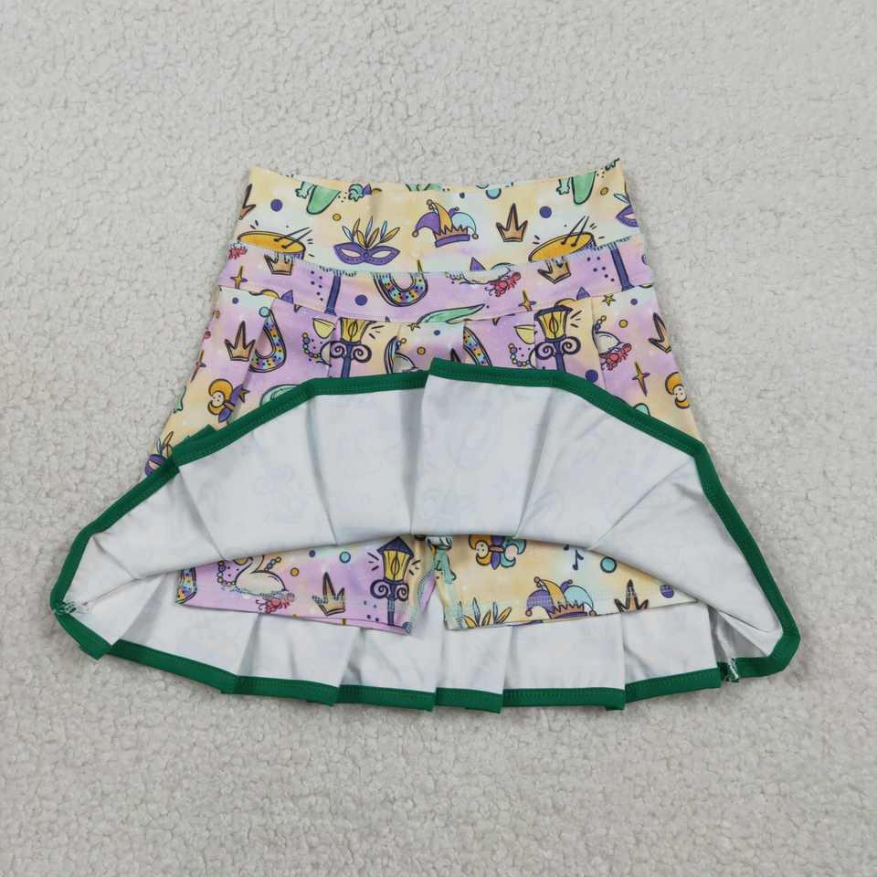 RTS Mardi Gras Coquette Bows Animals Athletic Wear Little Girls Children Pleated Skirt Shorts Lined Yoga Tennis Skorts Quick Dry