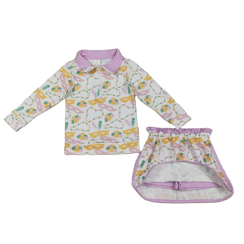 RTS Mardi Gras Donut Mask Bows Print Little Girls Pullover Shirt Skorts Skirt Shorts Lined Outfits Sister Tennis Clothes Sets