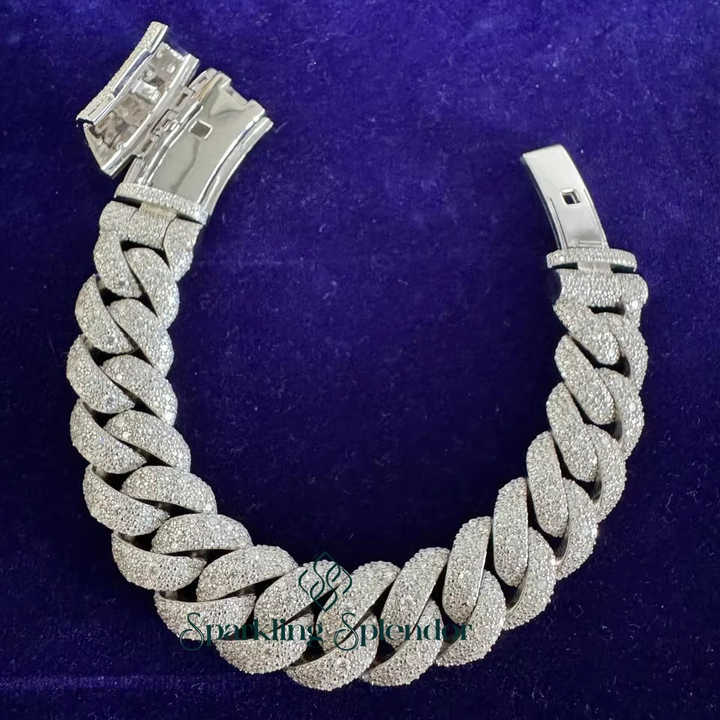 Mosaic setting Cuban Bracelet for Men in 925 Silver