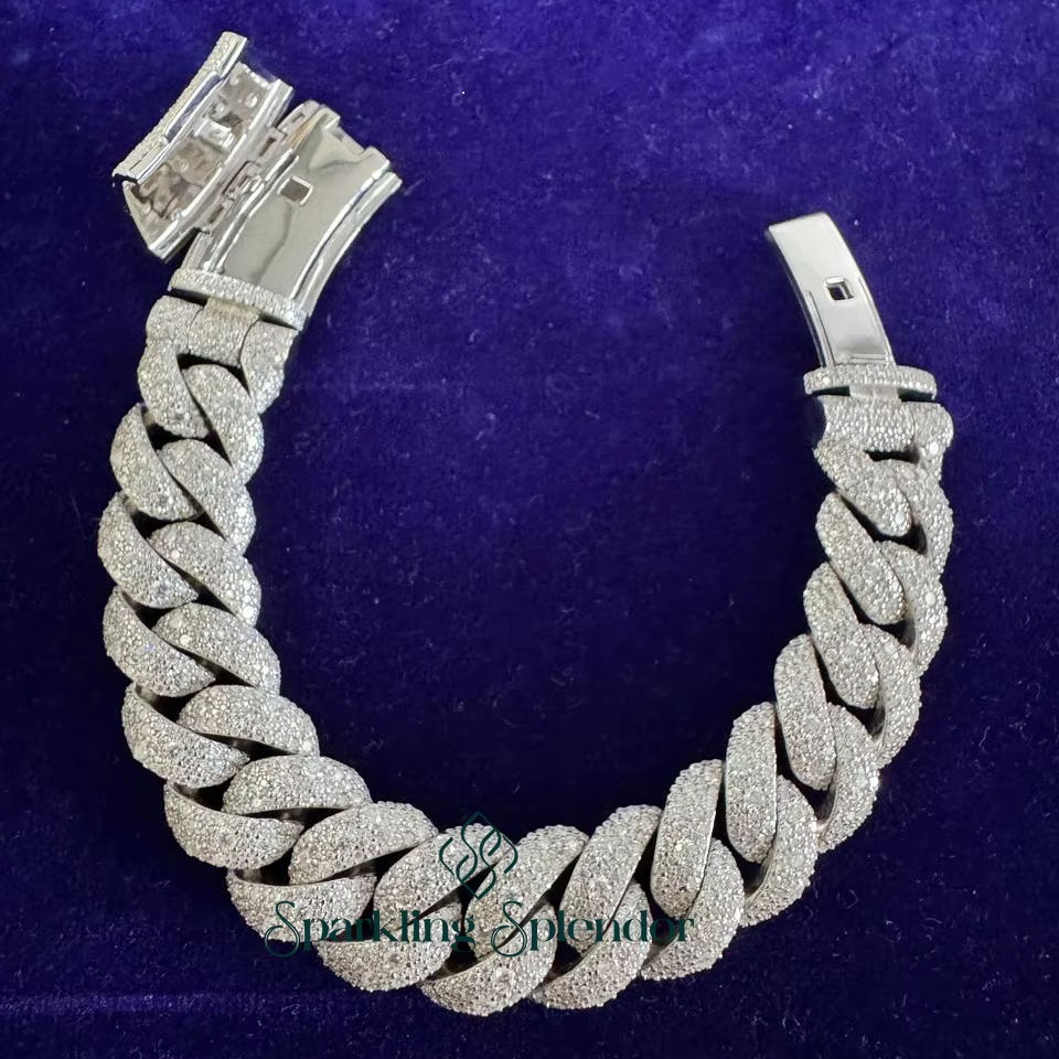 สร้อยข้อมือแบบ Cuban Link ทรงเรขาคณิตคลาสสิก ประดับเพชรโมอิสซาไนต์ VVS เงินแท้ 925 ขนาด 18 มม. สำหรับผู้ชายและผู้หญิง ผ่านการทดสอบคุณภาพเทียบเพชร