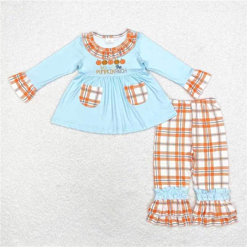 RTS NO MOQ ชุดลายฟักทองบูติกสำหรับเด็กผู้หญิงตัวเล็กๆเสื้อผ้าวันขอบคุณพระเจ้าขายส่ง