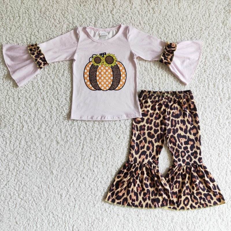 RTS NO MOQ ชุดปักลายฟักทองลายเสือดาวนมสำหรับเด็กผู้หญิงวัยหัดเดินขายส่ง