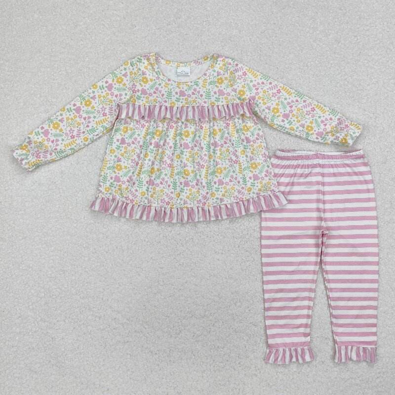 RTS NO MOQ Little girl Boutique Purple solid print fall outfits kids wholesale toddler girl child clothing