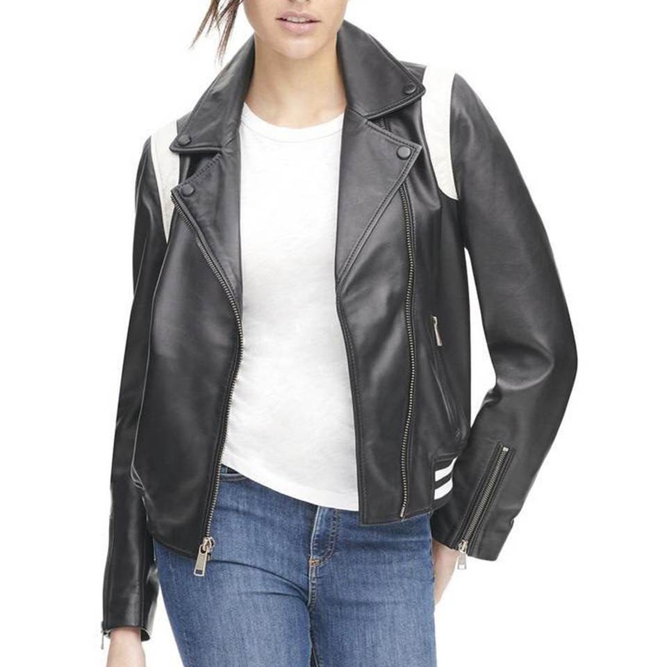 แจ็คเก็ตบอมเบอร์หนังแท้สำหรับผู้หญิง รุ่นใหม่ล่าสุดจาก RTS โลโก้สั่งทำได้ สีดำขาว สไตล์วินเทจ สำหรับฤดูหนาว ระบายอากาศได้ดี