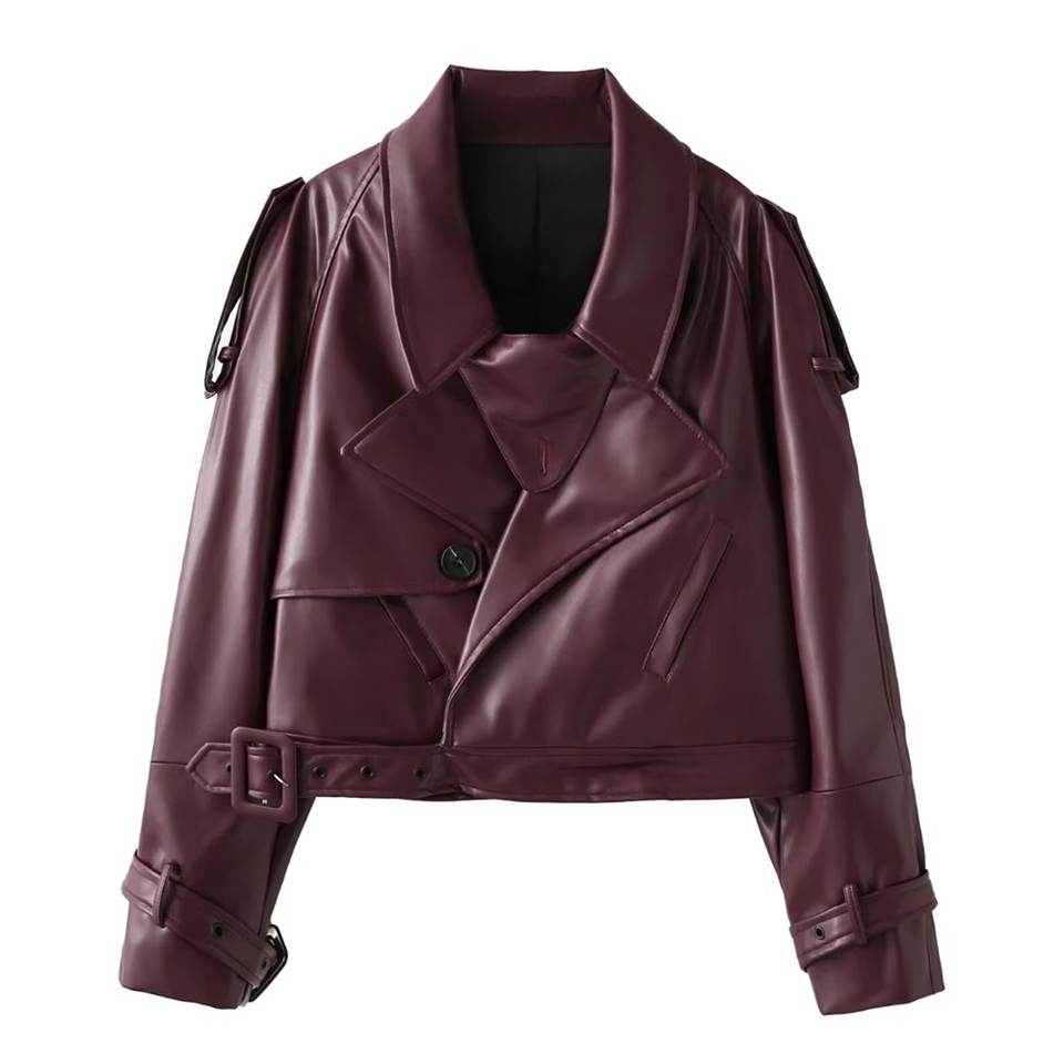 แจ็คเก็ตหนังแท้สีแดงเบอร์กันดี RTS รุ่นใหม่ล่าสุด พร้อมปักโลโก้ตามสั่ง สินค้ามาแรงสำหรับผู้หญิง แจ็คเก็ตวินเทจ สตรีทแวร์ ผู้หญิง สไตล์คลาสสิก