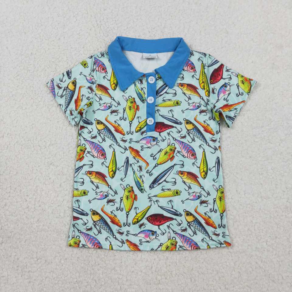 เสื้อโปโลเด็กชาย แขนยาว คอกลม พิมพ์ลายเบ็ดตกปลา ดีไซน์ใหม่ RTS ผ้า Worsted ระบายอากาศได้ดี ไซส์ใหญ่พิเศษ สำหรับเด็กผู้ชาย