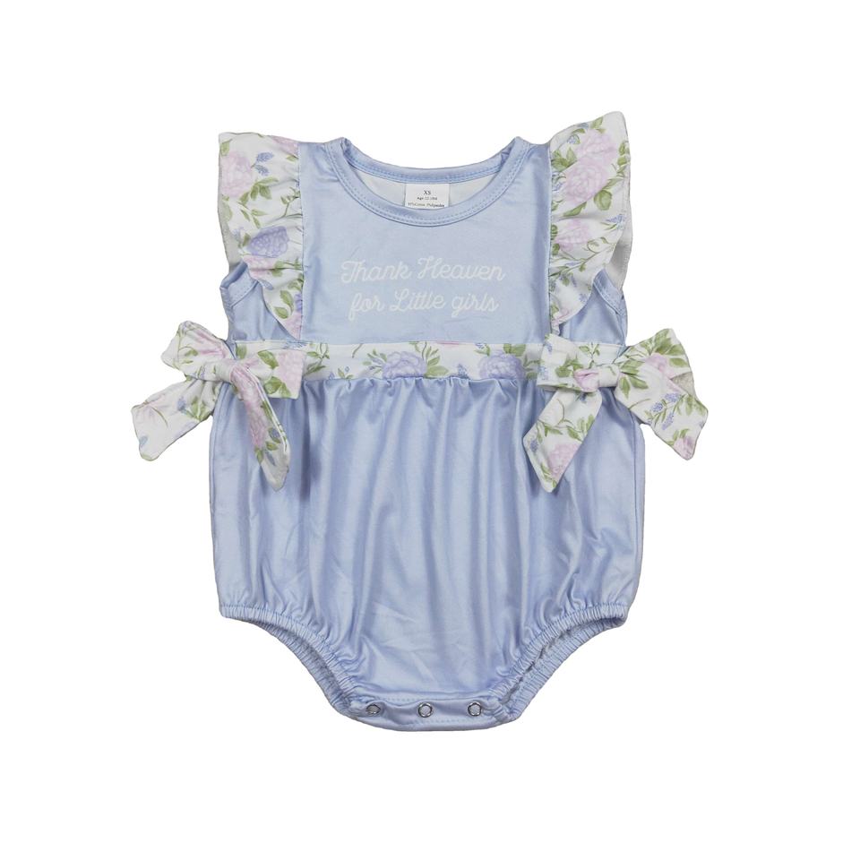 RTS Newborn Hot Sale Flower Sky Blue Bows Baby Girls Bubble Romper Hidden Zipper Cotton Spandex Casual Toddler Worsted Fabric
