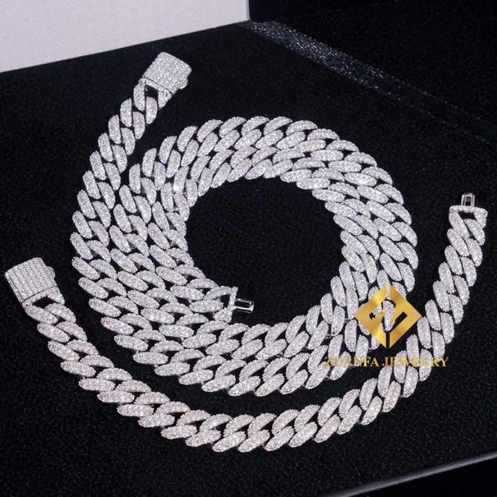 เครื่องทดสอบเพชรผ่าน RTS 10มม. 2แถวสร้อยข้อมือผู้ชาย Moissanite สร้อย925เงินคิวบาโซ่ชุบทองยอดนิยม