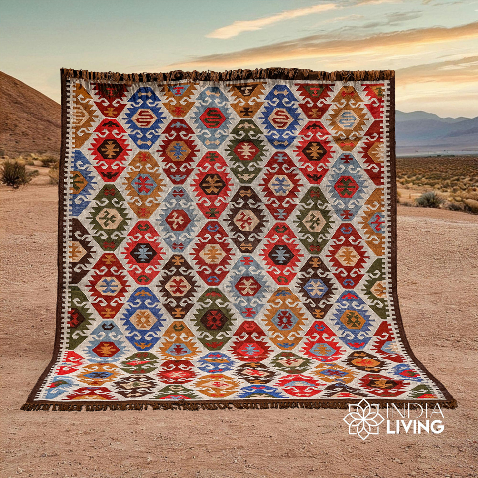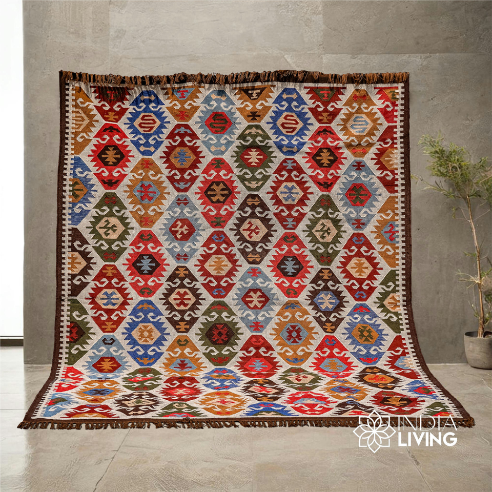 Weight:Approx. low pile kilim grade, dense structure for stability