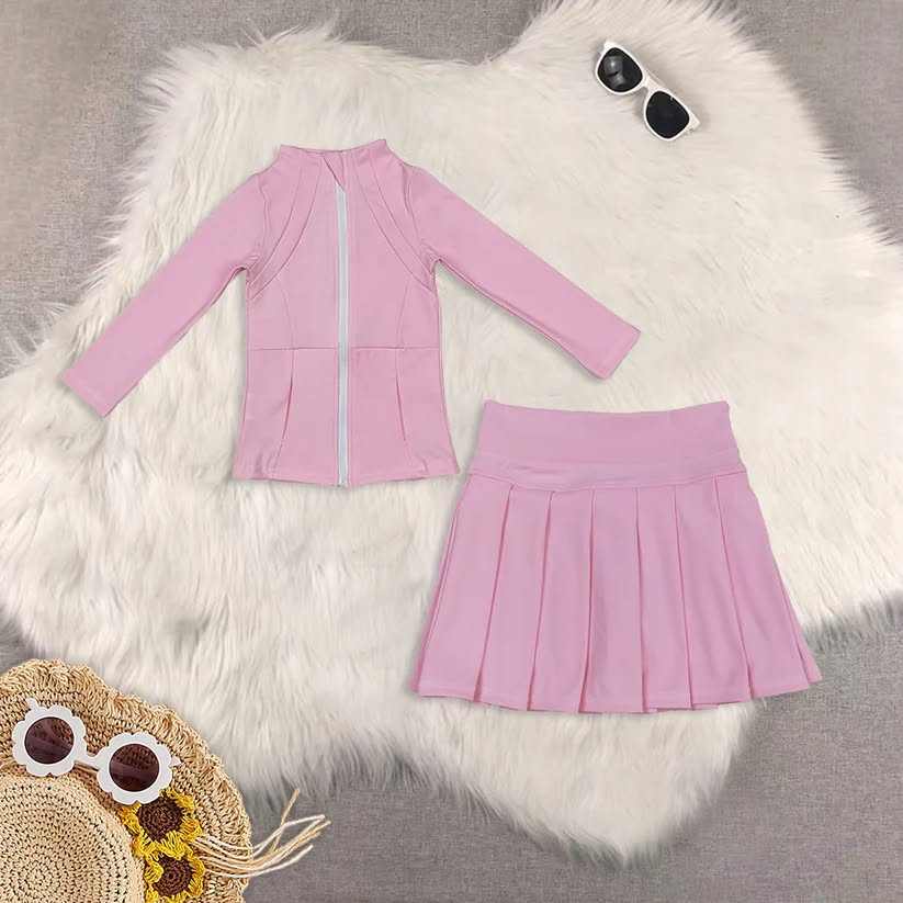 ชุดกีฬาสีพื้น RTS แขนยาวแบบมีซิปสำหรับเด็กผู้หญิง ชุดโยคะเด็กผู้หญิง ชุดออกกำลังกายเด็กผู้หญิง ชุดสองชิ้น