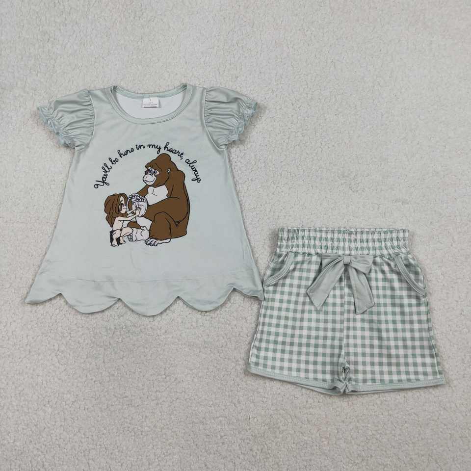 ชุดเสื้อยืดและกางเกงขาสั้นเด็กผู้หญิงสไตล์ลำลองสำหรับฤดูใบไม้ผลิและฤดูใบไม้ร่วง 2 ชิ้น ระบายอากาศดี ดีไซน์ใหม่ ลายสแกลลอป ขายส่ง