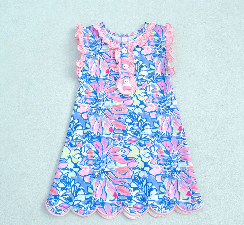 ชุดเดรสเด็กผู้หญิงทรงเอไลน์ ผ้าฝ้ายผสมสแปนเด็กซ์ พิมพ์ลายดอกไม้ สำหรับฤดูร้อน ระบายอากาศได้ดี แต่งขอบระบาย ดีไซน์สวยเก๋