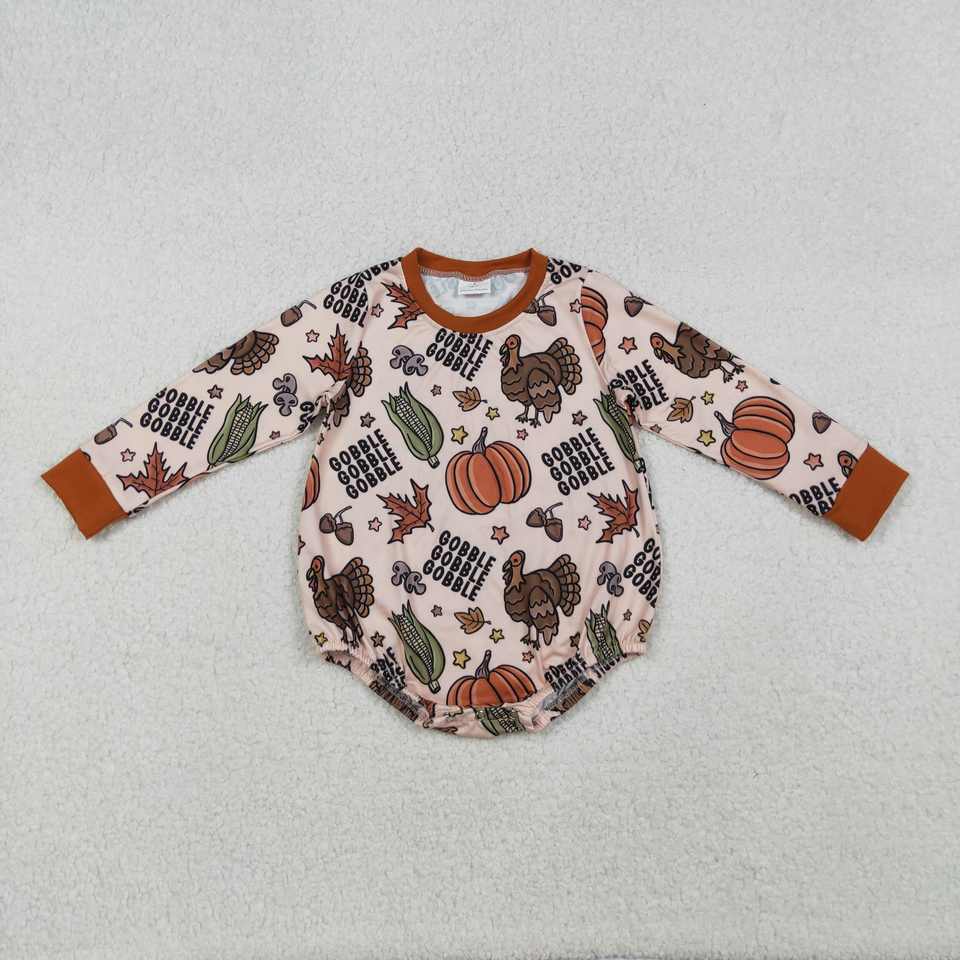 RTS ชุดรอมเปอร์ลายไก่งวงวันขอบคุณพระเจ้าน่ารักสำหรับเด็กวัยหัดเดินแบบมีฟองสำหรับฤดูใบไม้ร่วงขายส่ง