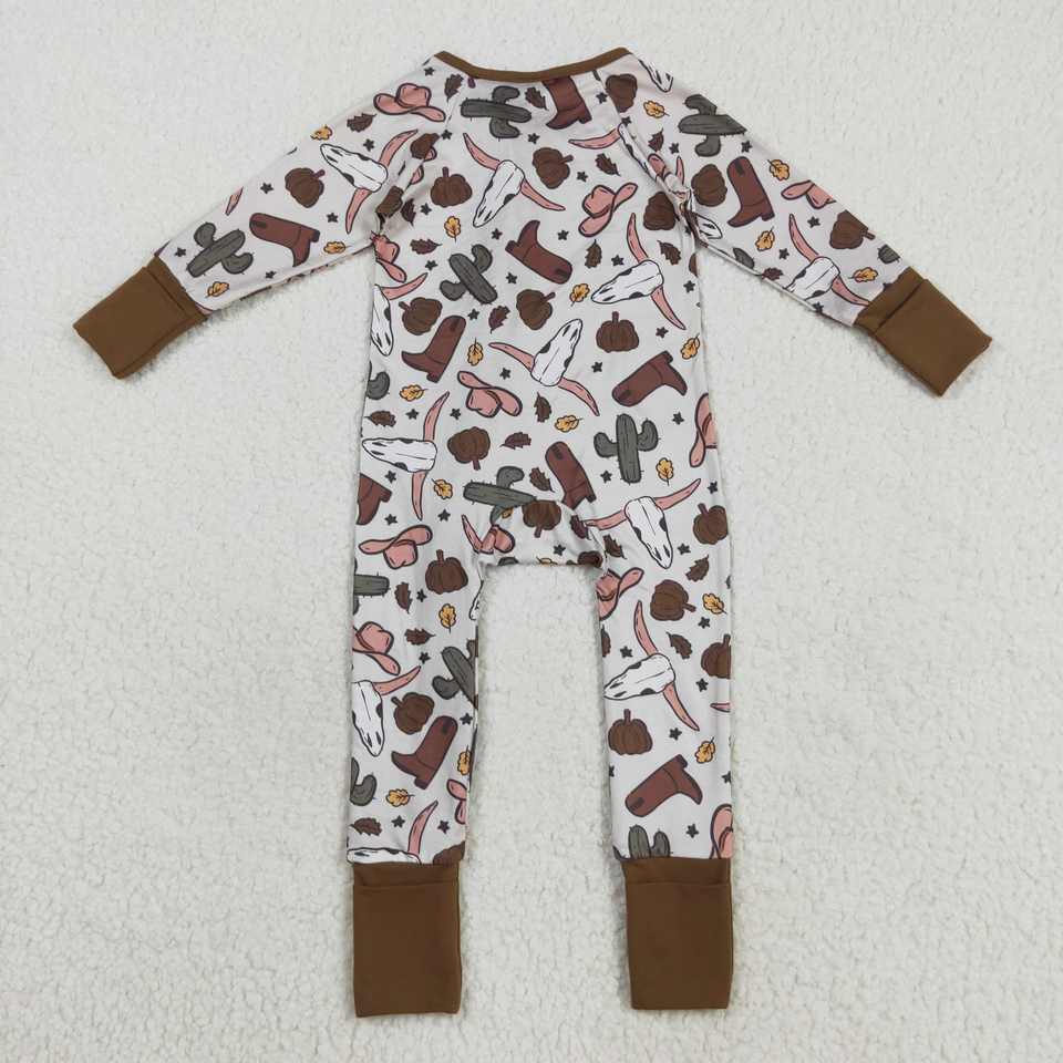RTS ชุดหมีสำหรับเด็กทารกชายมีซิปสไตล์คาวบอยตะวันตกชุดนอนชุดหมีสำหรับเด็กแรกเกิดรองเท้าบูทกระทิงกะโหลกชุดหมีสำหรับเด็กวัยหัดเดิน