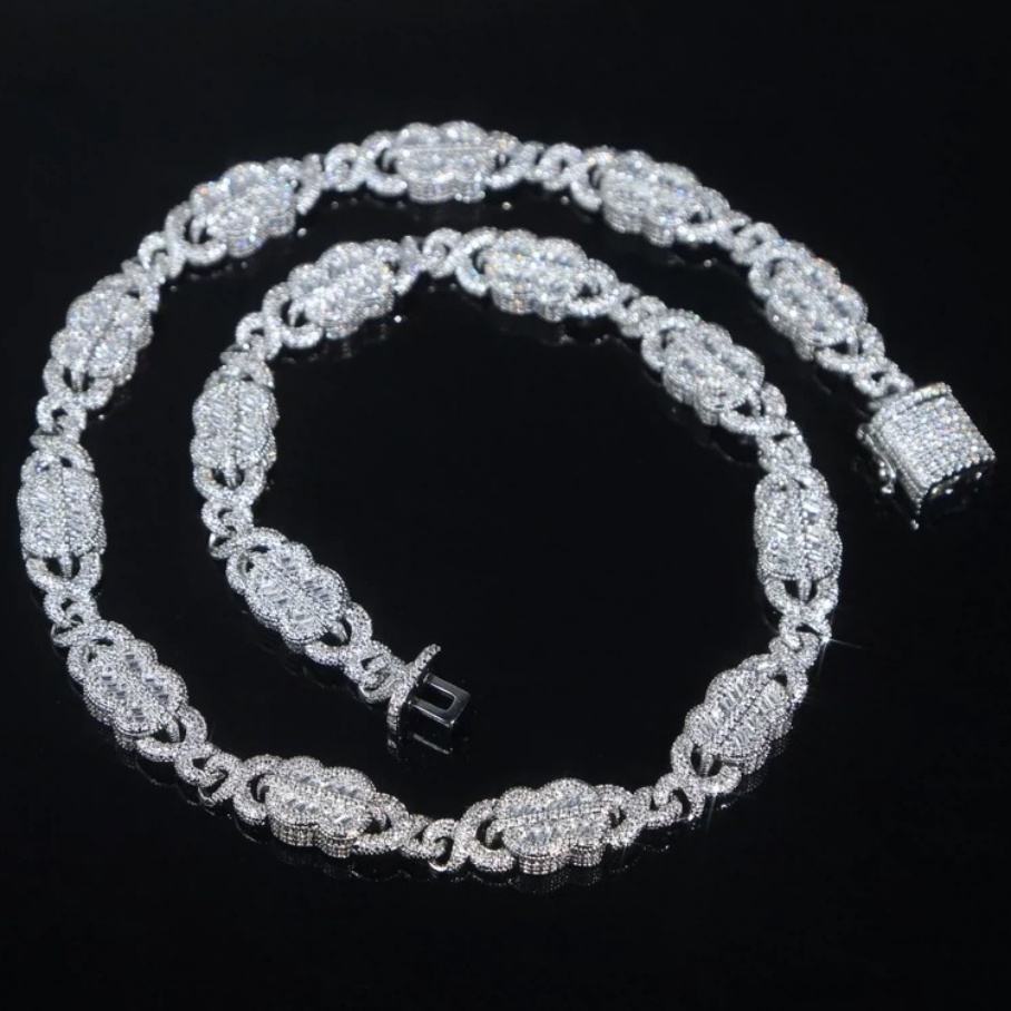 สร้อยคอและกำไลข้อมือแบบ Cuban Link ชุบทองคำขาว 18k ประดับเพชรโมอิสซาไนต์ VVS เกรด RTS บนตัวเรือนเงินแท้ 925