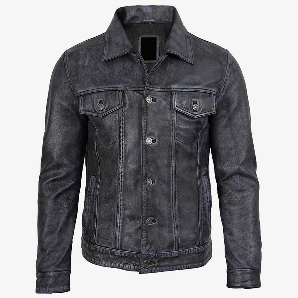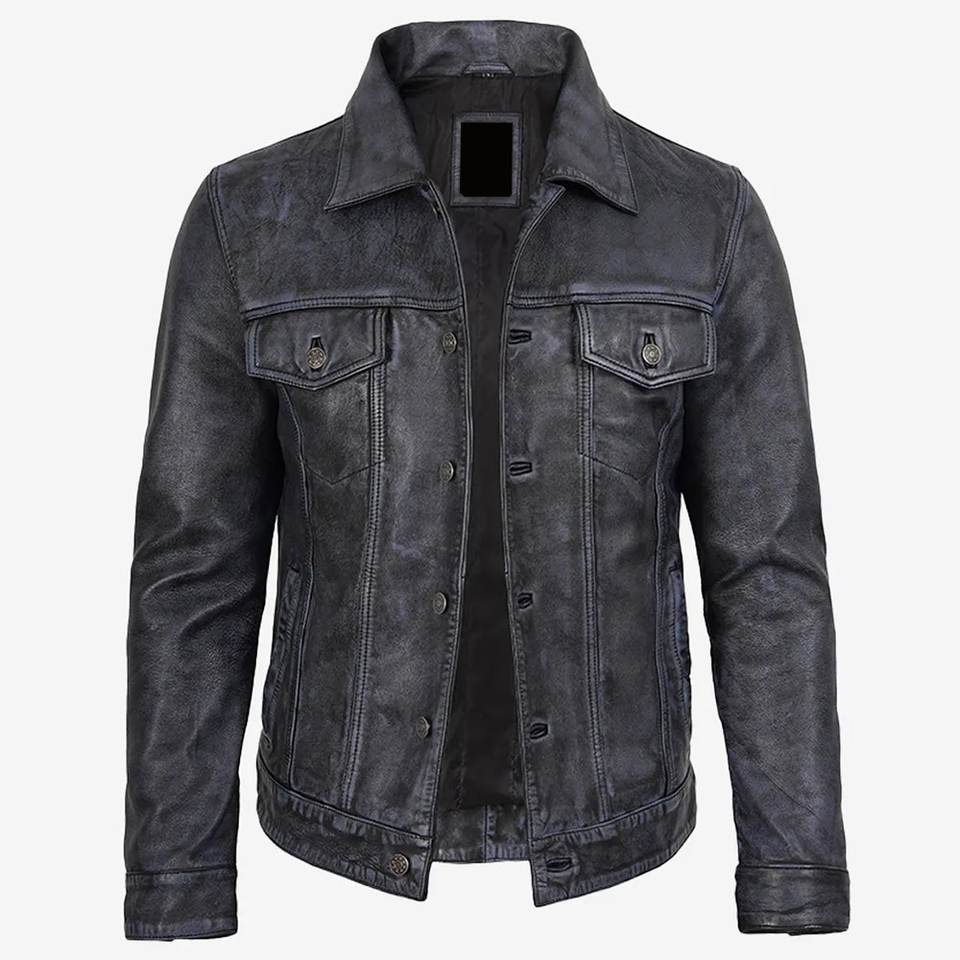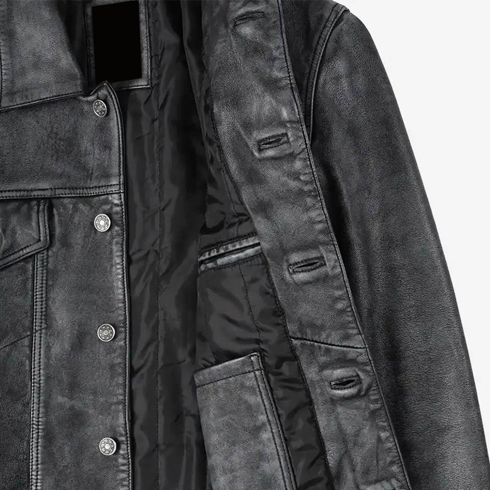 แจ็คเก็ตหนังแกะวินเทจสีดำล้างสีสำหรับผู้ชาย RTS Wholesale Custom Logo ระบายอากาศได้ดี เป็นมิตรกับสิ่งแวดล้อม เหมาะสำหรับฤดูหนาว สไตล์สตรีทแวร์