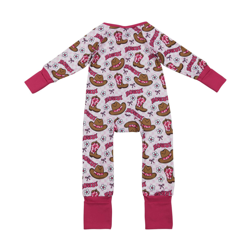 ชุดรอมเปอร์เด็กผู้หญิงแขนยาวผ้าฝ้ายออร์แกนิค/สแปนเด็กซ์ ยี่ห้อ RTS Wholesale Western Boots รุ่นซิป สำหรับฤดูใบไม้ผลิ