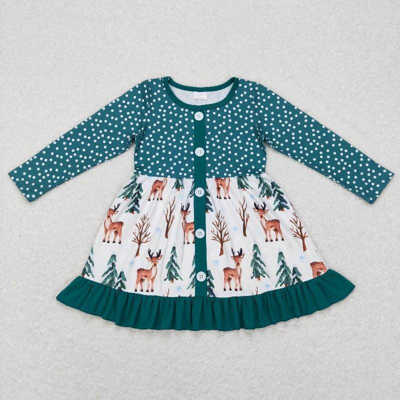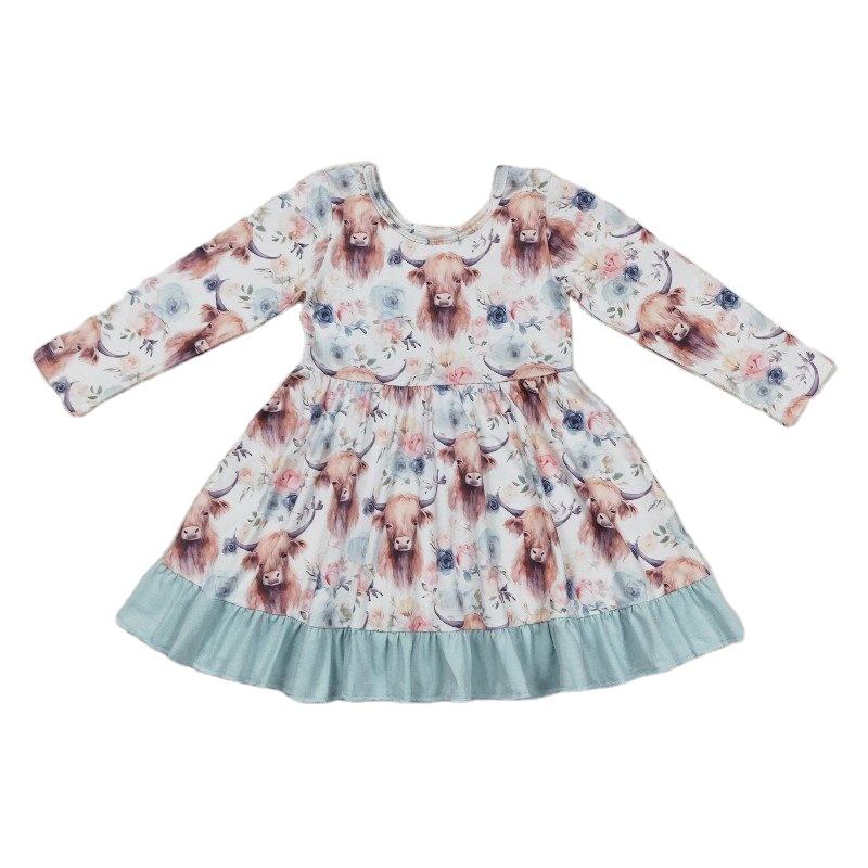 RTS Wholesale flowers cattle Print Kids Dress long Sleeve Child Fall Set Little Girl Boutique kids clothing