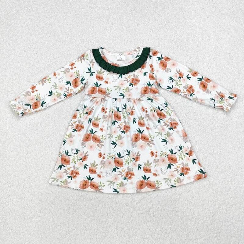 RTS ชุดเดรสแขนยาวสำหรับเด็กพิมพ์ลายกระเป๋าเป็ดสีเขียวชุดเสื้อผ้าบูติกสำหรับเด็กผู้หญิงตัวเล็ก