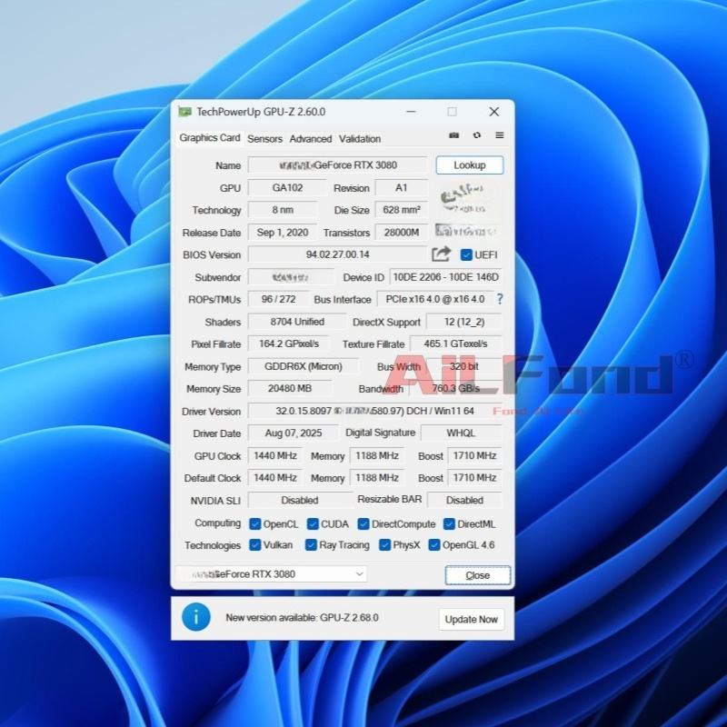 เลือกเลยGPU รุ่น: Geforce RTX3080