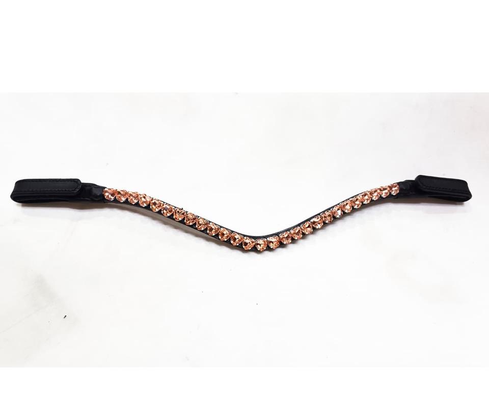 สายคาดหน้าผากม้าหนังสังเคราะห์หรูหราประดับคริสตัลรูปตัววี ยี่ห้อ RUB INTERNATIONAL พร้อมอุปกรณ์เสริมสำหรับบังเหียน สีโรสโกลด์ ประดับด้วยคริสตัลคุณภาพพรีเมียม
