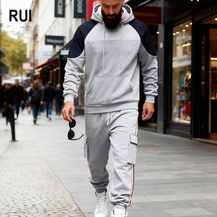 ชุดวอร์มผู้ชาย RUIQUWIN 2026 รุ่นสปริง ระบายอากาศได้ดี เนื้อผ้าหนา ทรงหลวม สีสันตัดกัน มีฮู้ดและกางเกงขายาว สวมใส่สบายๆ ไซส์ใหญ่ เหมาะสำหรับใส่ในชีวิตประจำวัน