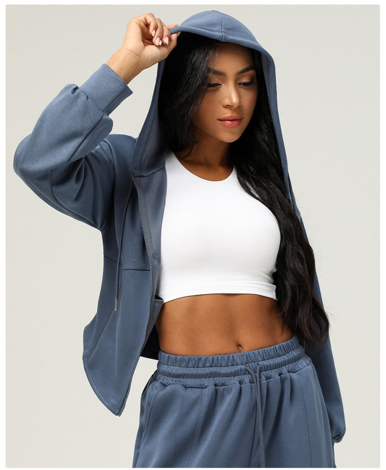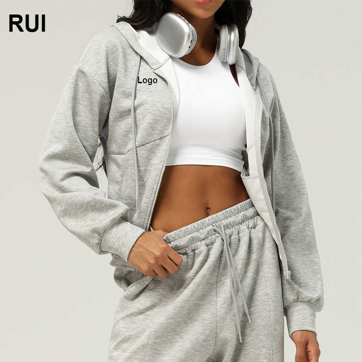 เสื้อฮู้ดซิปหน้าแขนยาว RUIQUWIN รุ่นใหม่สำหรับฤดูใบไม้ผลิ เหมาะสำหรับวิ่งออกกำลังกาย พร้อมเชือกผูกเอวสำหรับผู้หญิง