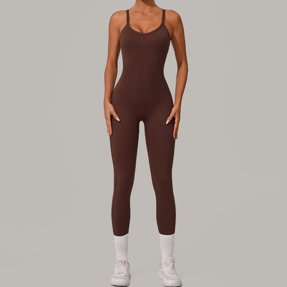 Ruiquwin ชุดจั๊มสูทกีฬาแบบไขว้ด้านหลังเซ็กซี่ของผู้หญิงชุดบอดี้สูทโยคะรัดรูปยืดหยุ่นสูงพร้อมกางเกงขายาว OEM ชุดกีฬา