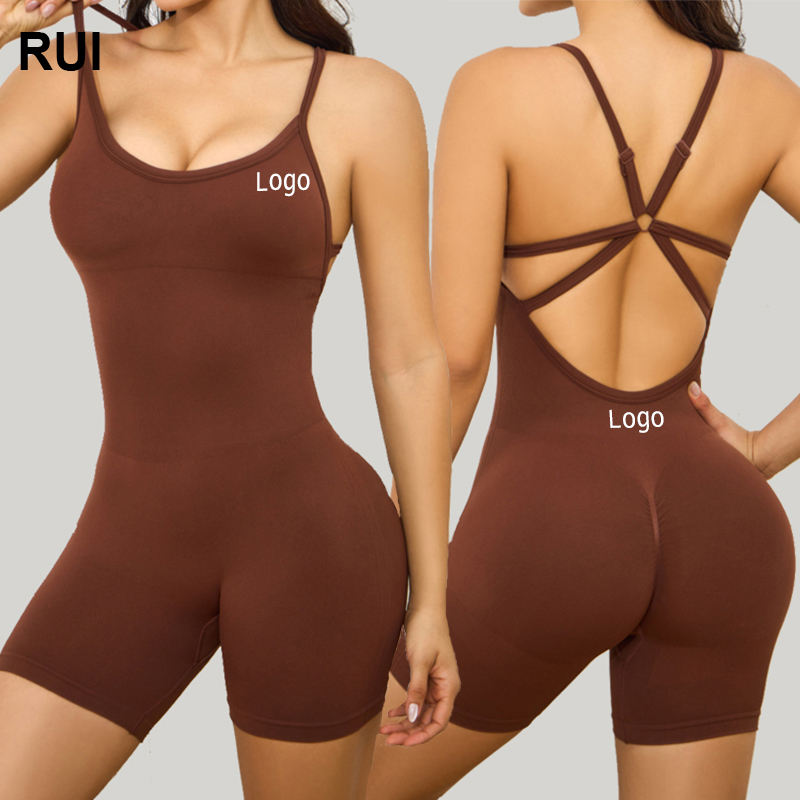 Ruiquwin ชุดจั๊มสูทโยคะใส่สบายแห้งเร็วชุดเล่นกีฬากลางแจ้งกางเกงขาสั้นผ้ายืดแบบแข็งระบายอากาศได้ดี