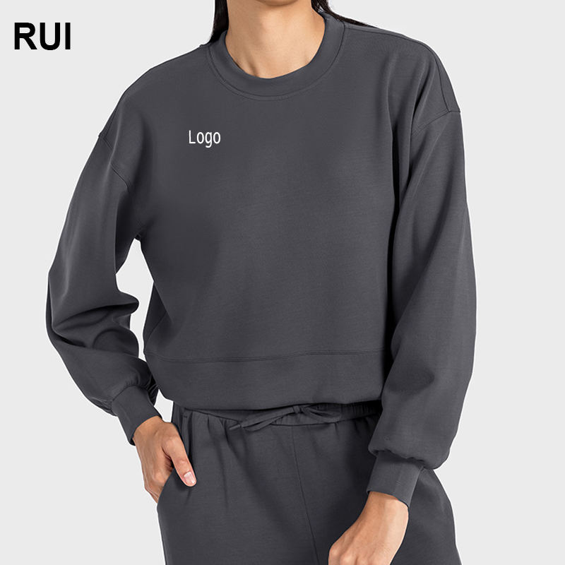 Ruiquwin เสื้อกันหนาวแบบสวมหัวคอกลมสำหรับผู้หญิง, เสื้อกันหนาวลำลองแขนยาวแฟชั่นโอเวอร์ไซส์