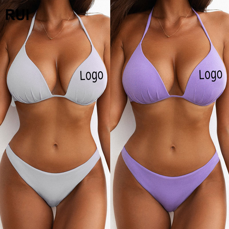 ชุดบิกินี่ RUIQUWIN แบบใหม่สำหรับผู้หญิง เซ็กซี่แบบดันทรง คอวี ชุด 2 ชิ้น ผลิตตามสั่ง แห้งเร็ว ระบายอากาศได้ดี เป็นมิตรกับสิ่งแวดล้อม