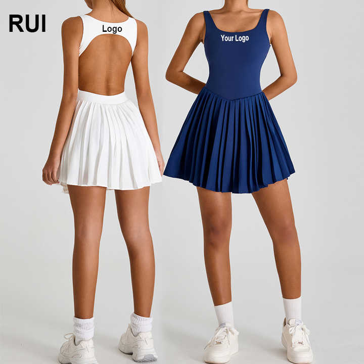 Ruiquwin กระโปรงเทนนิสผู้หญิงแบบชิ้นเดียวระบายอากาศได้ดีผ้าสแปนเด็กซ์/ ไนลอนพิมพ์ลายฟรีชุดออกกำลังกายเปิดหลังสวยงาม