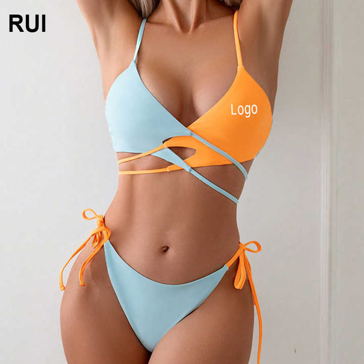 Ruiquwin ชุดว่ายน้ำเซ็กซี่ระบายอากาศได้ดีสำหรับผู้หญิงชุดบิกินี่ผูกเชือกชุดชายหาดแห้งเร็วสำหรับฤดูร้อน