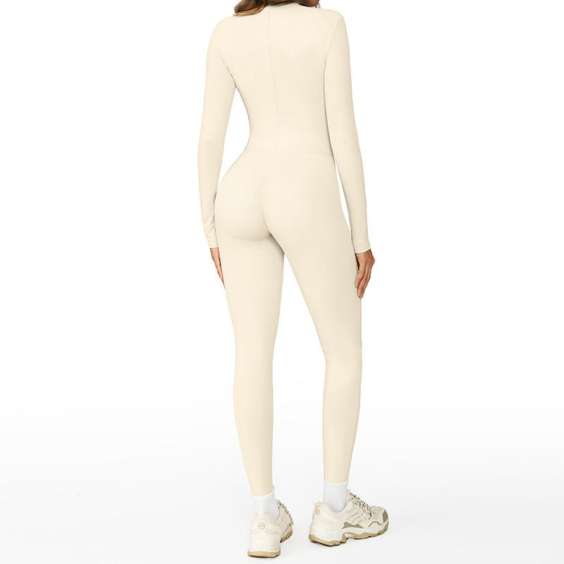 Ruiquwin ชุดบอดี้สูทกีฬาลำลองของผู้หญิงแบบรัดรูปชุดจั๊มสูทแบบชิ้นเดียวมีซิปปกตั้งแขนยาวให้ความอบอุ่น