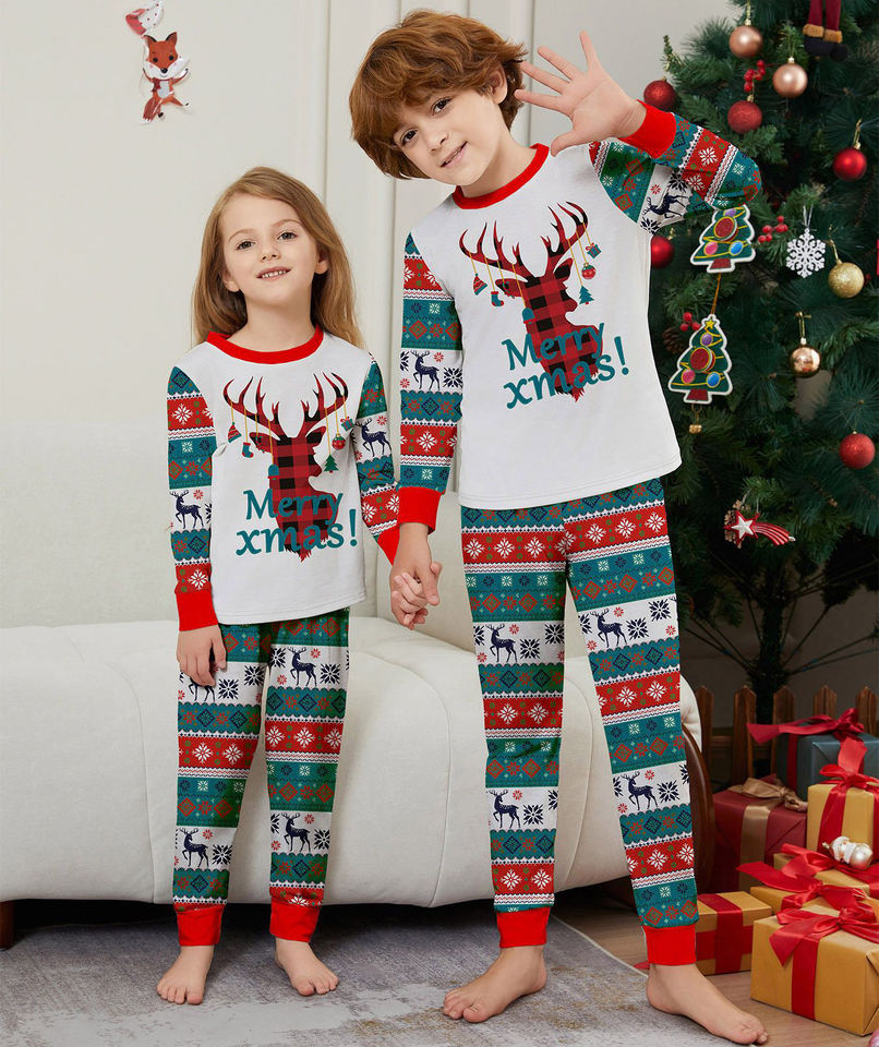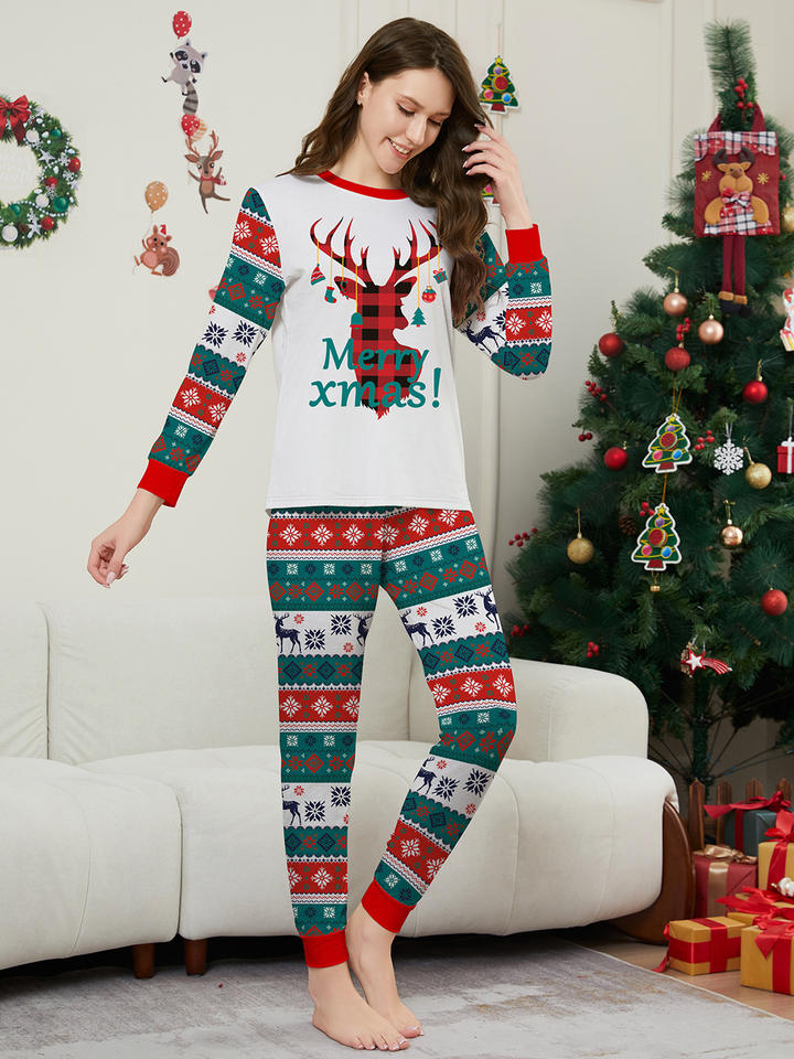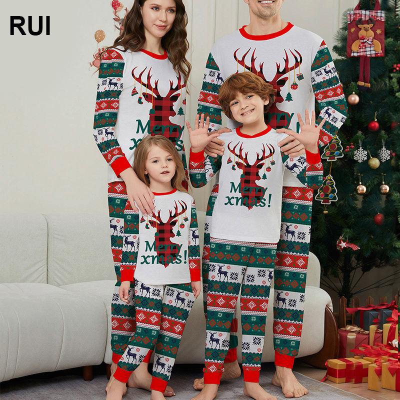 ชุดนอนคริสต์มาสใหม่สำหรับผู้หญิง RUIQUWIN สีแดง พิมพ์ลายซานต้า กวางเรนเดียร์ และตัวอักษร เอวยางยืดนุ่มสบาย ชุดนอนครอบครัวสำหรับวันหยุด