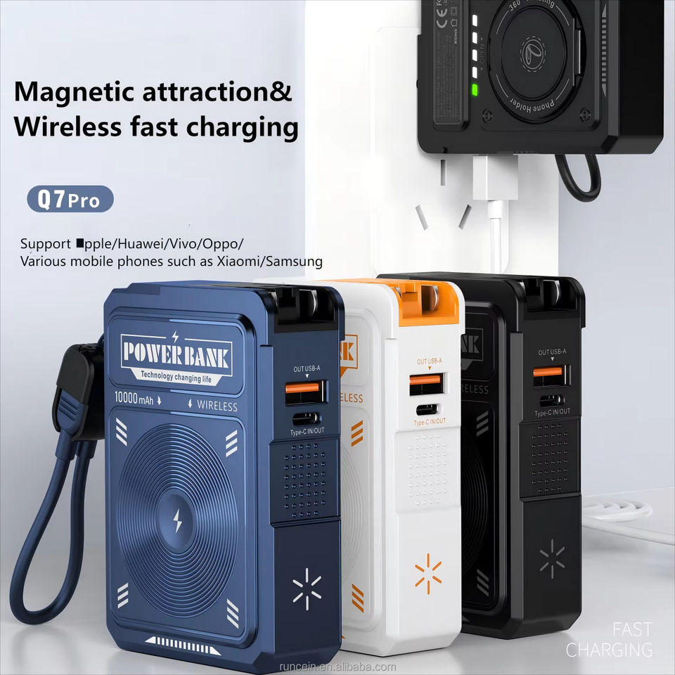 Runcein ปลั๊ก AC พับได้ปรับแต่งได้, PD22.5W ชาร์จเร็วแบตสำรอง10000mAh ชาร์จไร้สาย