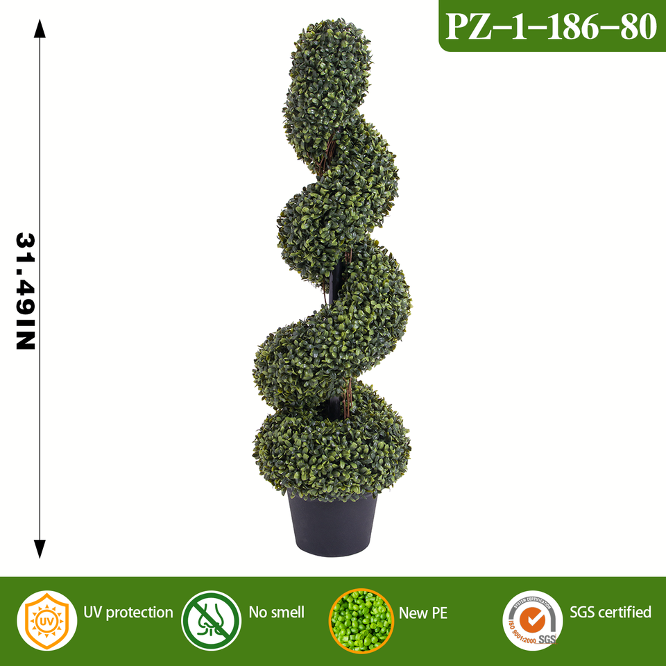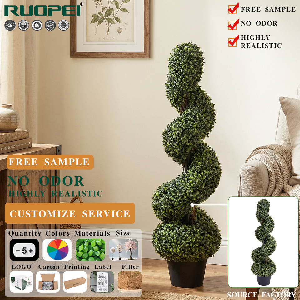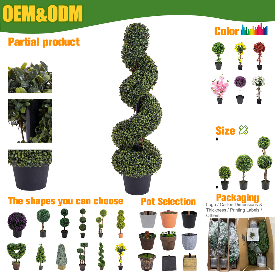 ชื่อผลิตภัณฑ์:ต้นไม้ประดิษฐ์ทรงเกลียวจากไม้บ็อกซ์วูด ทนต่อรังสียูวี จำลองต้นบูซัส