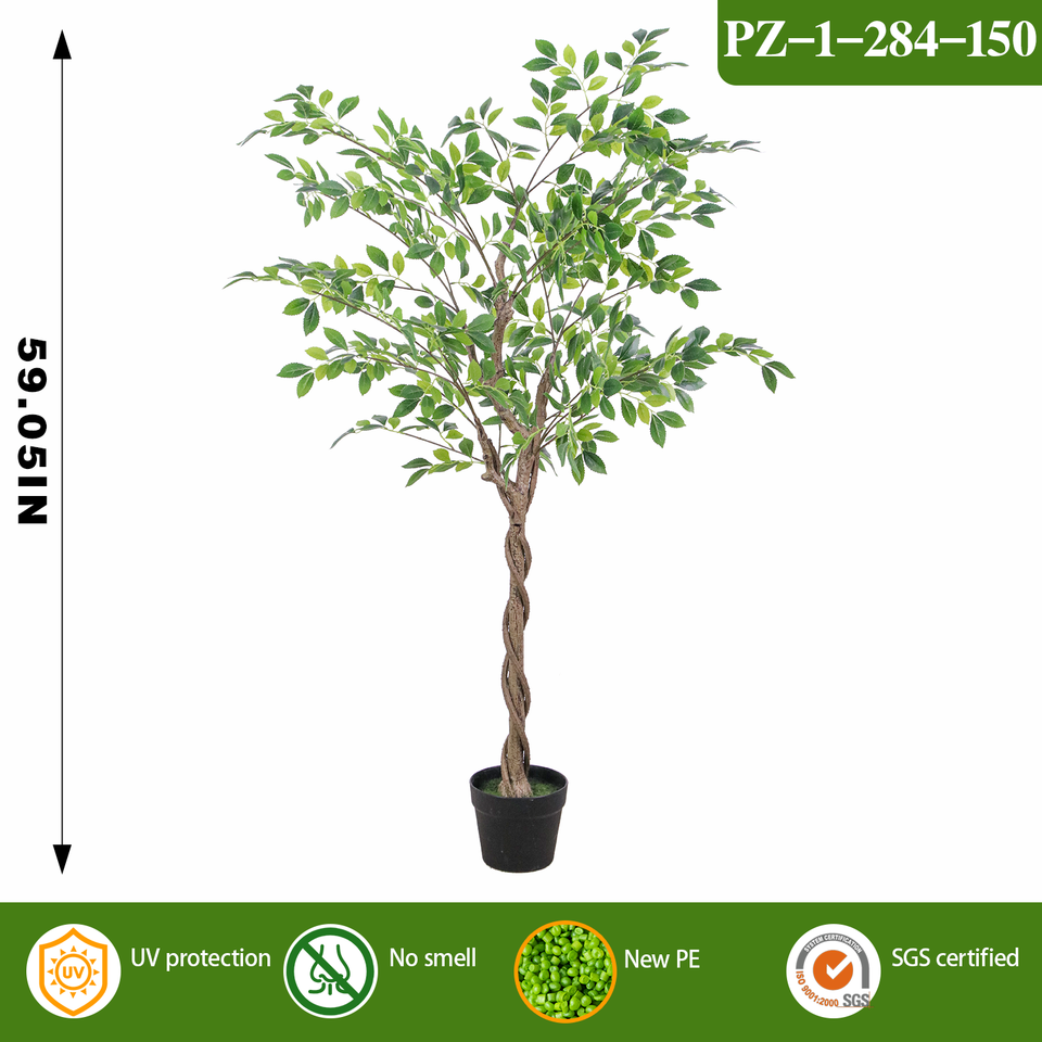 ต้นไทรประดิษฐ์ RUOPEI แบบกิ่งบิดงอ ต้นไม้ประดับปลอม ไม่มีกลิ่น ต้นไม้ปลอมสีเขียว สำหรับตกแต่งบ้าน สำนักงาน ภายในอาคาร