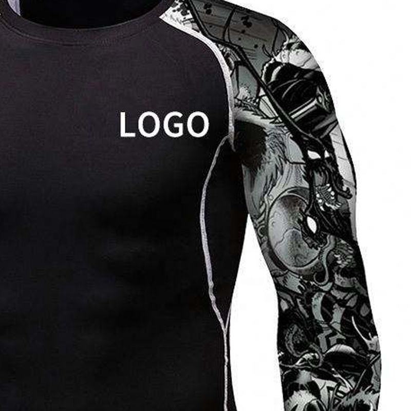 เสื้อรัดกล้ามแขนยาว RUSH GUARD ผลิตจากโพลีเอสเตอร์ 100% น้ำหนัก 220 กรัม เป็นมิตรต่อสิ่งแวดล้อม สำหรับผู้ชายและผู้หญิง พร้อมบริการพิมพ์ลายแบบซับลิเมชั่นตามสั่ง