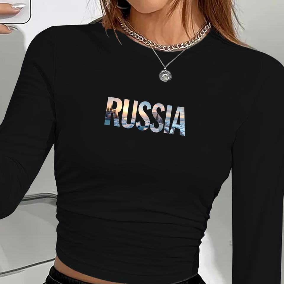 เสื้อเชิ้ตแขนยาวแฟชั่น Y2K สำหรับผู้หญิงจากรัสเซีย พร้อมลายพิมพ์บนผ้าถัก