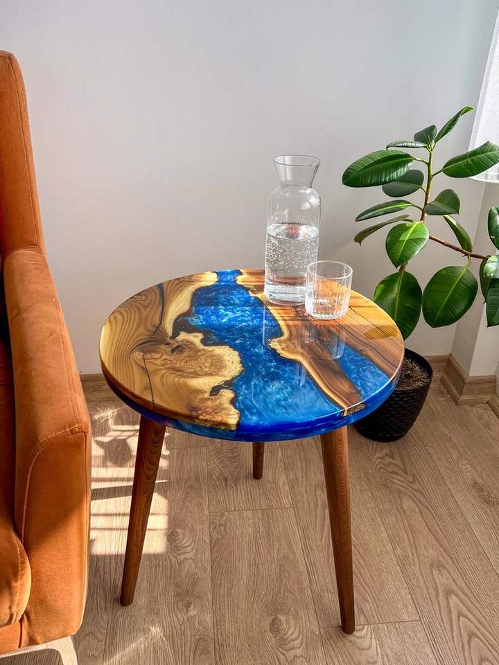 โต๊ะเรซินอีพ็อกซี่ทรงกลมงานฝีมือแนวชนบทสำหรับห้องรับประทานอาหารเฟอร์นิเจอร์โต๊ะแม่น้ำและไม้เรซิ่นสำหรับบ้านสำนักงาน