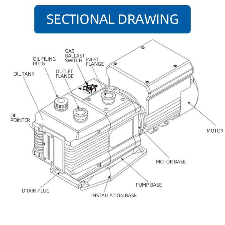 ปั๊มสุญญากาศแบบใบพัดหมุน RVS-6 7.2 ลิตร/วินาที 60 เฮิรตซ์ พร้อมคุณสมบัติประหยัดพลังงาน ระบบสุญญากาศแห้งสูง