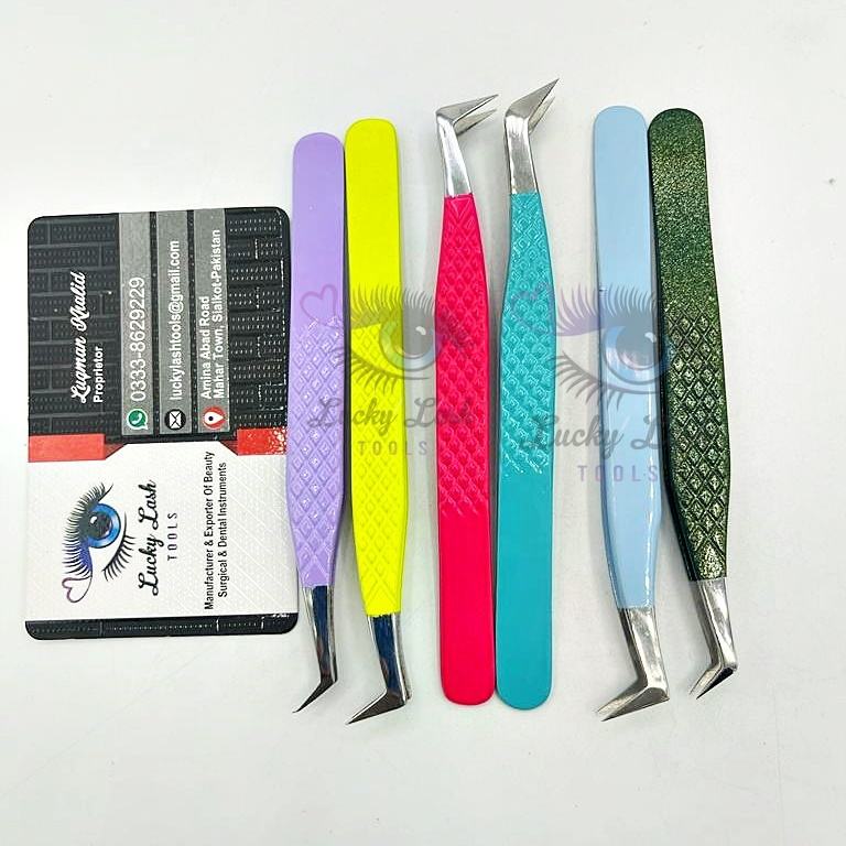 RVT Russian Volume Custom Logo Eyelash Extension Tweezers 45 Angle Boot Diamond Smooth Grip Stainless Steel High Quality LUCKY